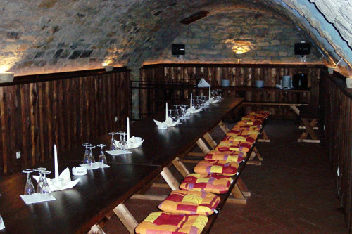 Der Weinkeller unseres Hauses bietet ihnen ein rustikales Ambiente. Genießen Sie hier Speisen und Getränke im ritterlichen Flair.